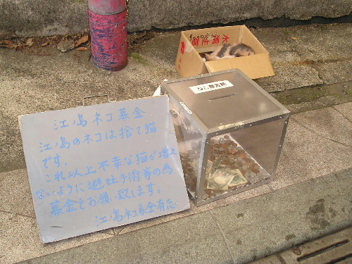 江ノ島の猫たちの為の募金箱私も出来るだけ協力しております。